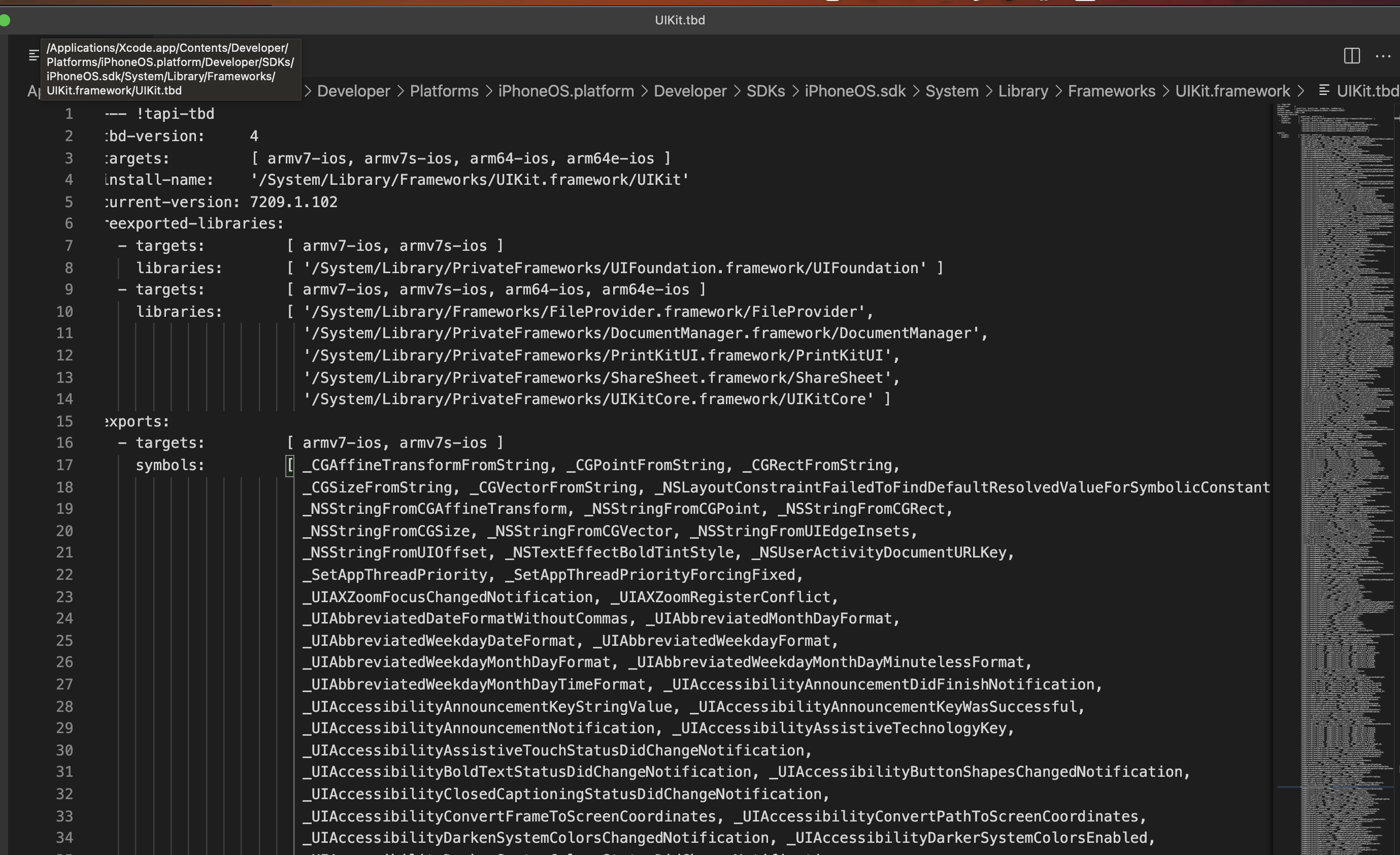 - UIKit.tbd: 'Text-Based Stub library'의 약자로, 아래 정보와 같은 것들을 포함하는 정보