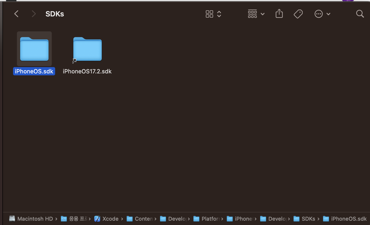 - 위 폴더에서 Developer에 들어가보면 Library, SDK, usr가 존재