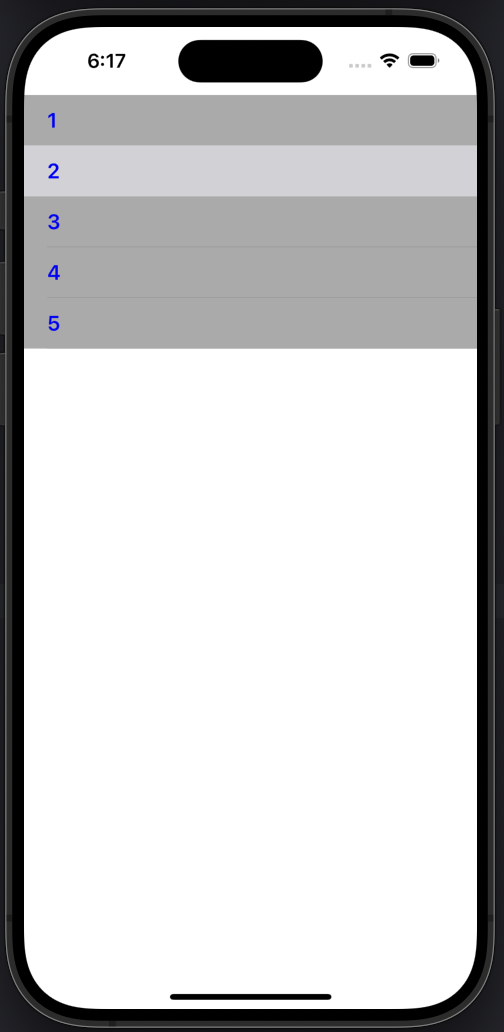 ex) UITableView에 5개의 데이터가 있는 예제 코드