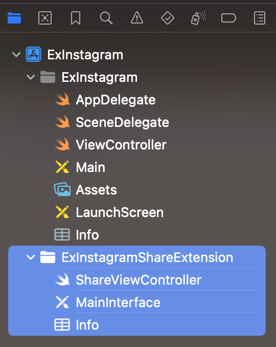- 이 앱에서 Share sheet에 제공할 인터페이스를 만들기 위해서 Share Extension 생성