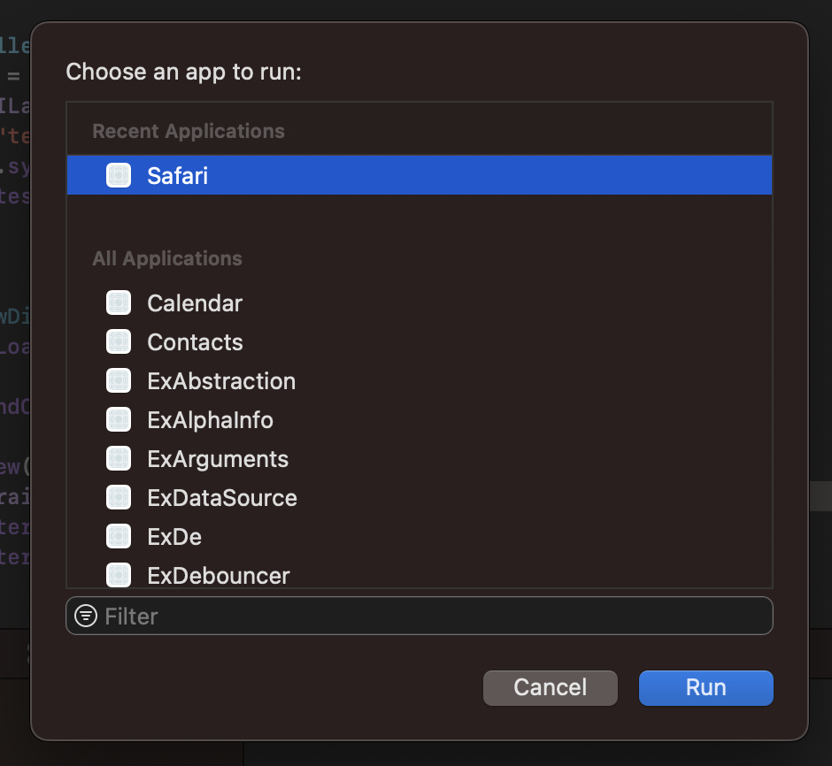 - cmd + R로 실행하면 Share Extension을 테스트할 수 있는 앱선택 가능