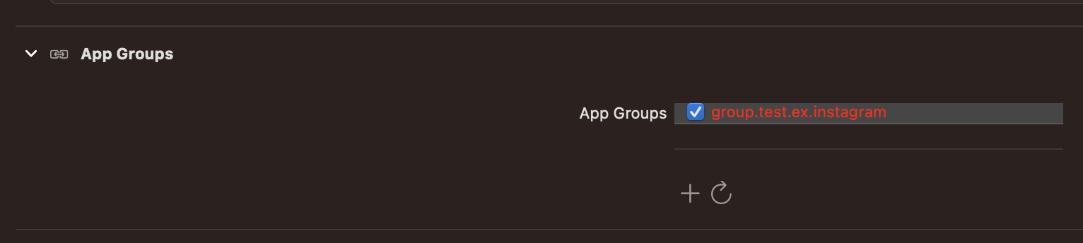 - share extenion뿐만이 아닌 앱에도 App Groups를 추가하고 위와 동일한 ID를 입력해주면 완료