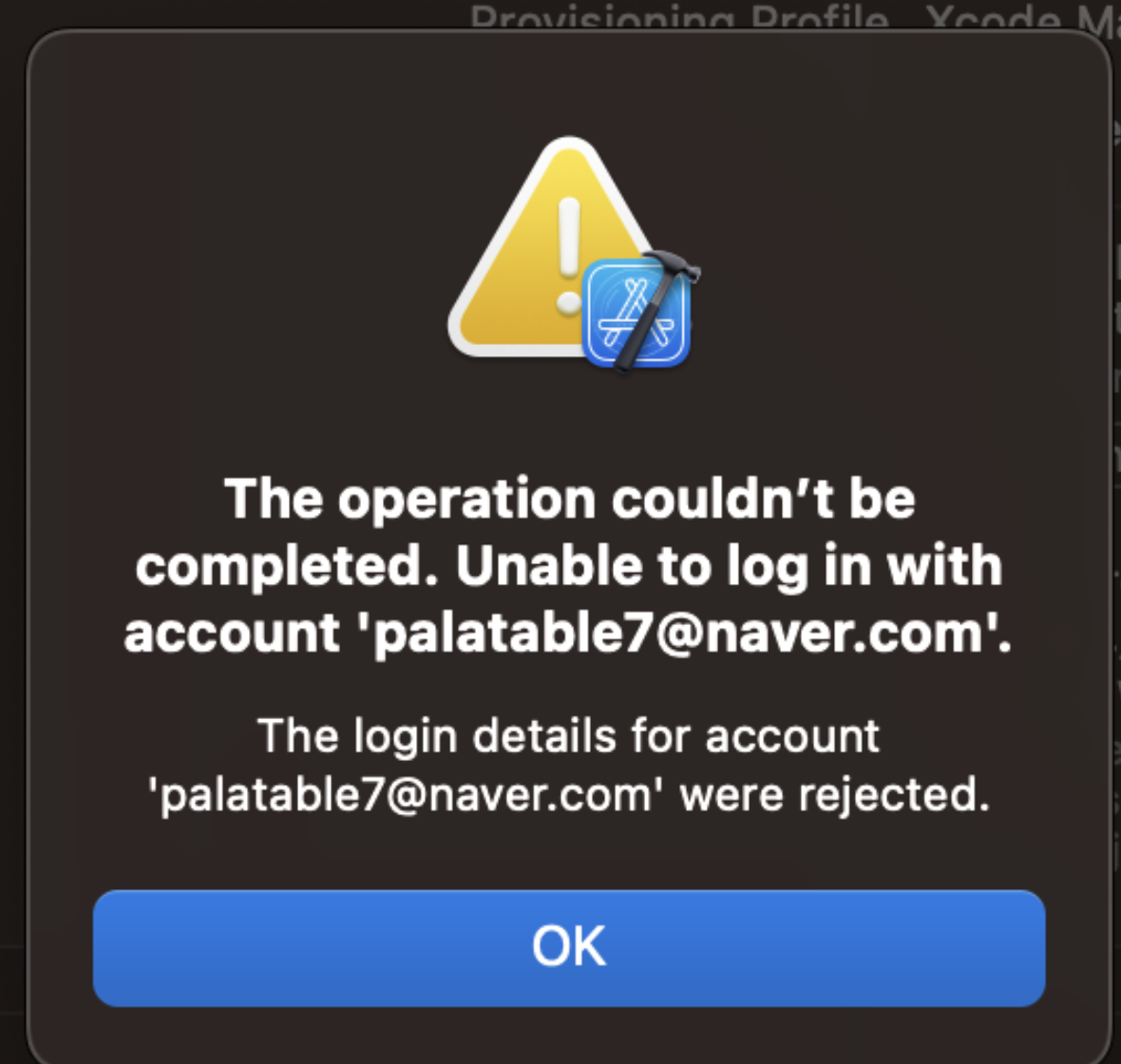 - (아래 사진은 Apple Developer 계정 구독이 안되어 있는 경우 발생)
