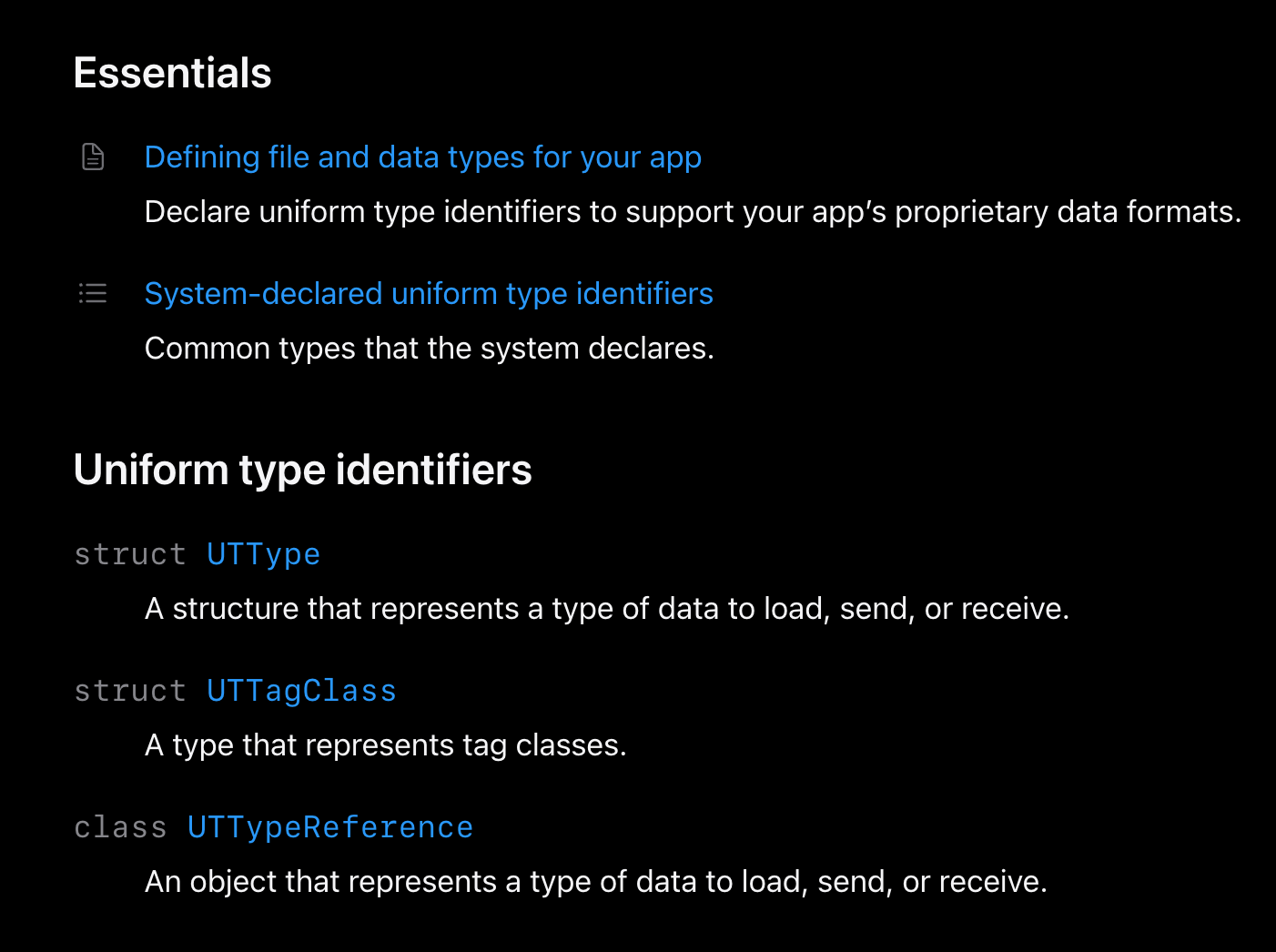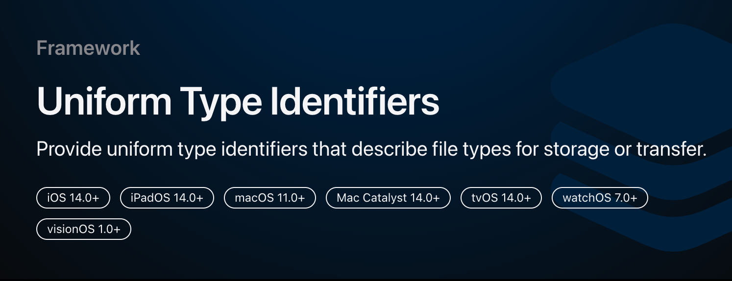 - https://developer.apple.com/documentation/uniformtypeidentifiers