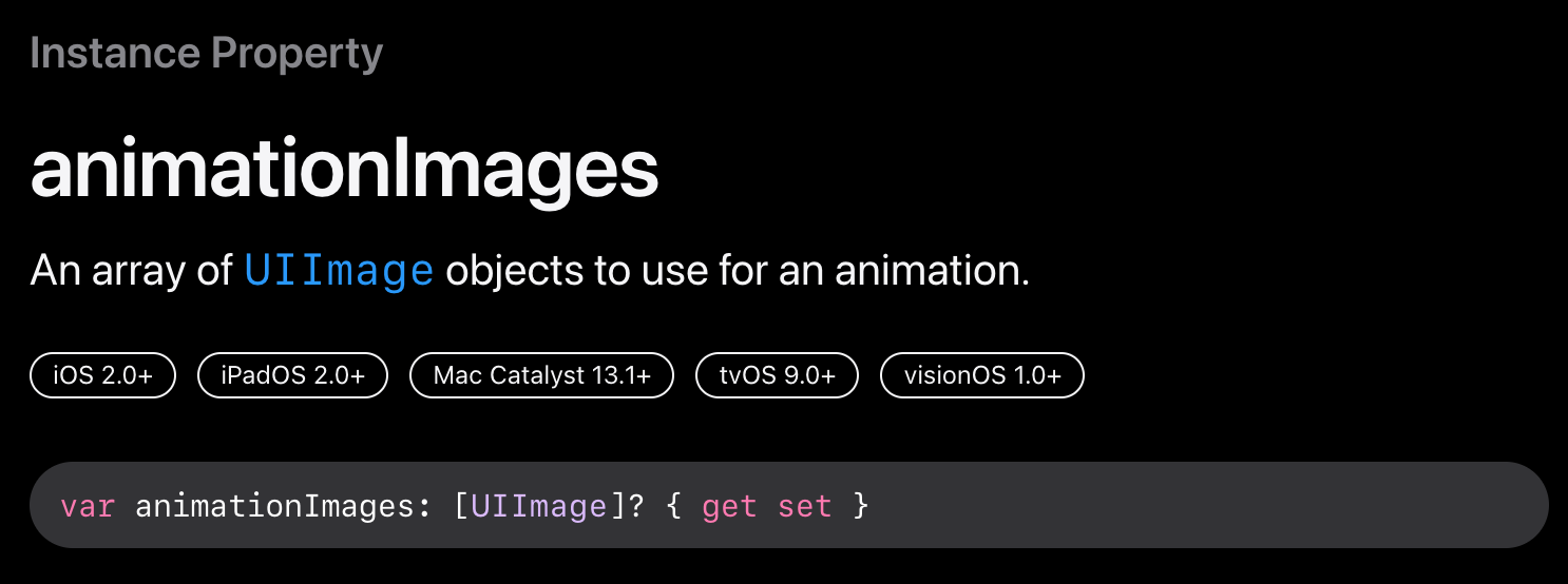 - https://developer.apple.com/documentation/uikit/uiimageview/1621068-animationimages