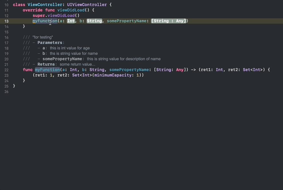 [iOS - swift] 유용한 주석 단축키 - 메소드 파라미터 주석 (#함수 주석 템플릿 단축키) 본문