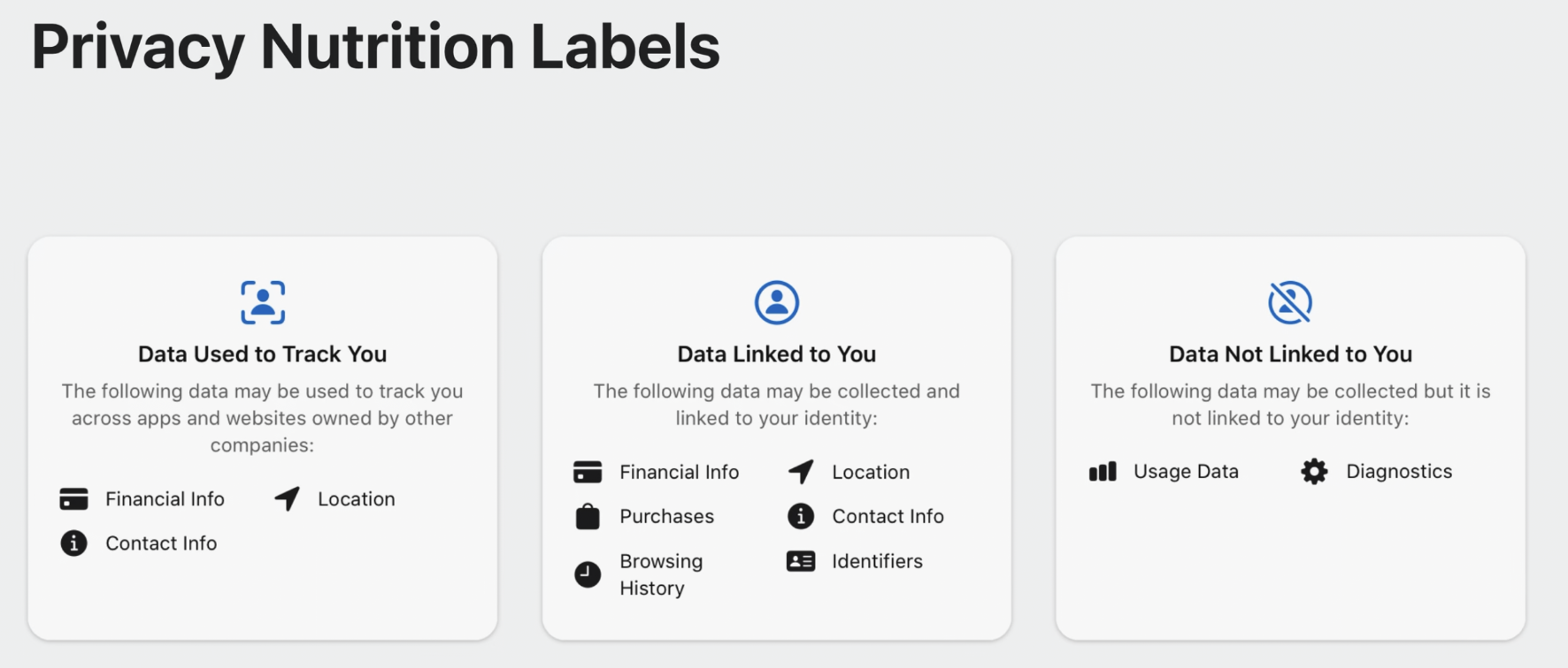 - 앱의 사용자 입장에서 '앱이 수집하는 데이터는 무엇인가?'라는 물음이 있을 때, 그 물음에 답이 되는 것들