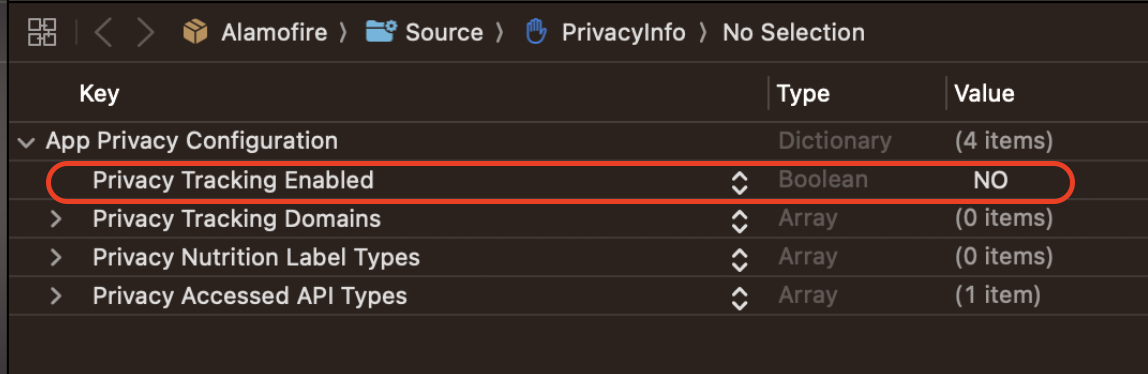 - Alamofire깃을 clone하고 프로젝트를 열어 PrivacyInfo 파일을 확인
