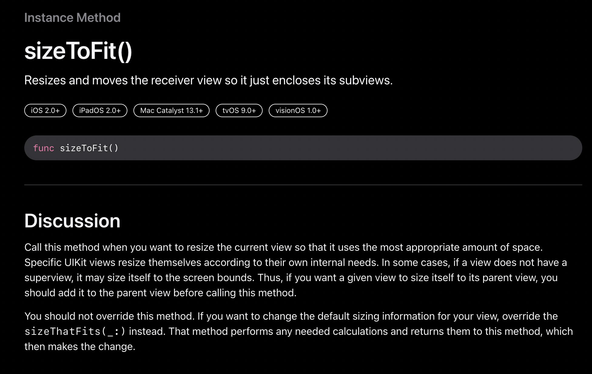 - https://developer.apple.com/documentation/uikit/uiview/1622630-sizetofit#discussion