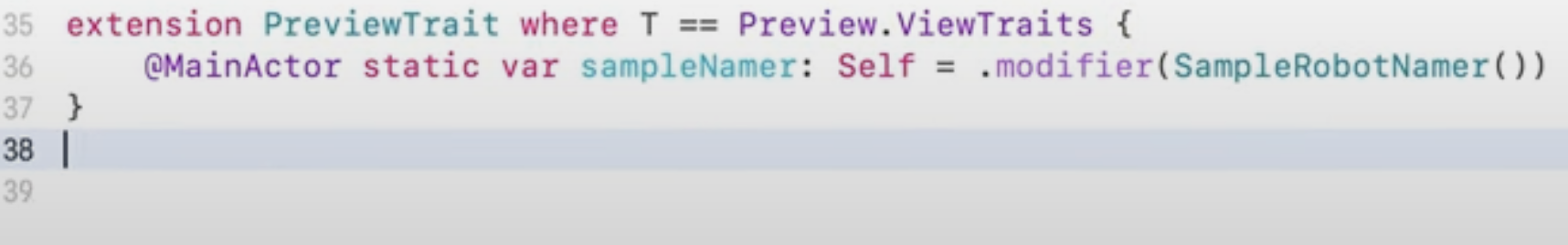 - 이제 사용하는 쪽에서도 단순히 #Preview(traits:)으로 편리하게 사용가능