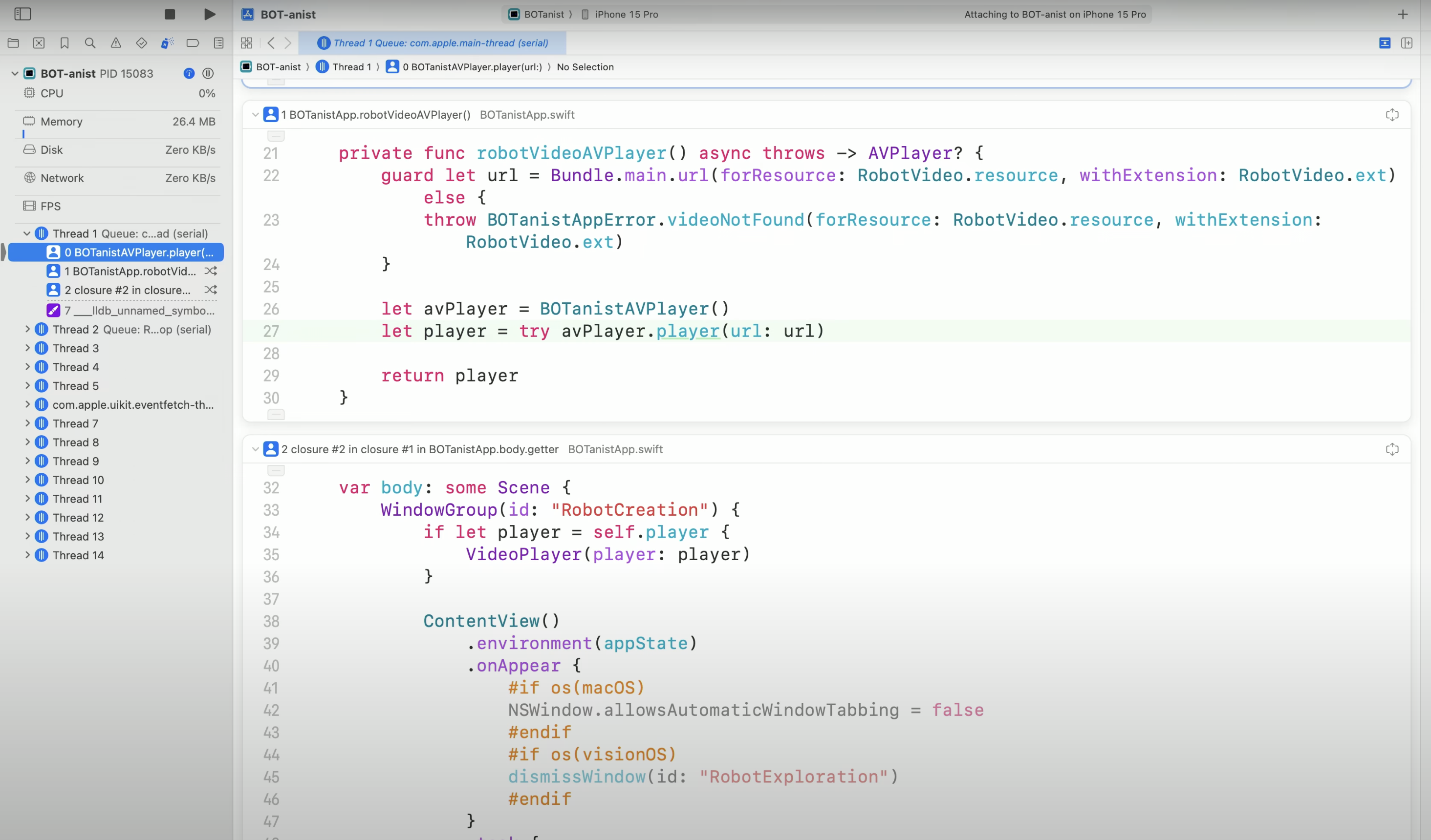 - Xcode에 중단점을 설정하고 디버깅을 시도할 때 이전에는 코드가 있고, 그 코드를 누르면서 어떤 소스코드에서 발생했는지 역추적을 시도했어야 했는데, Xcode 16부터는 코드가 stack trace에 맞게 나열되어서 보기가 편해짐