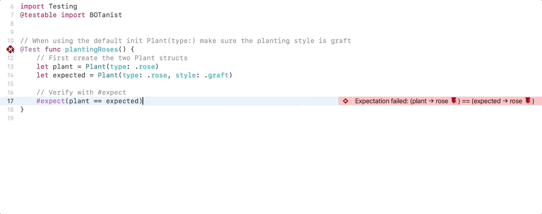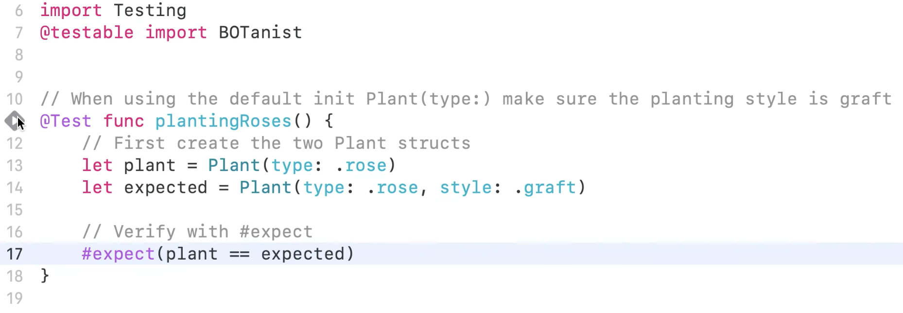 - Testing 프레임워크에서 제공하는 #expect를 사용하여 테스트수행
