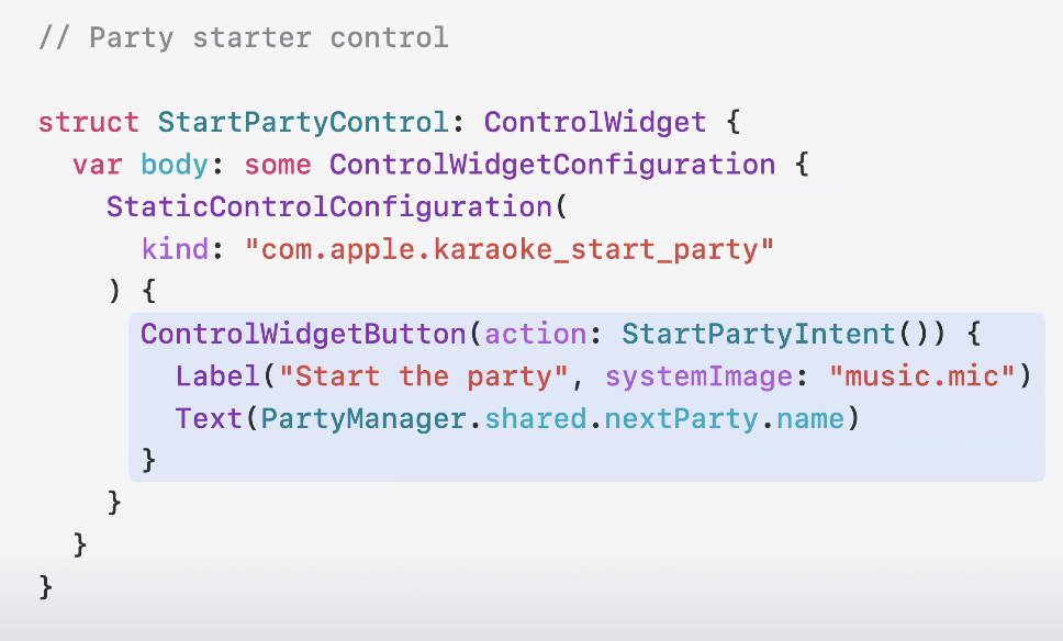 * 더 많은 버튼과 토글을 구현하는 방법은 WWDC24 Access your app's controls access the system 세션 참고