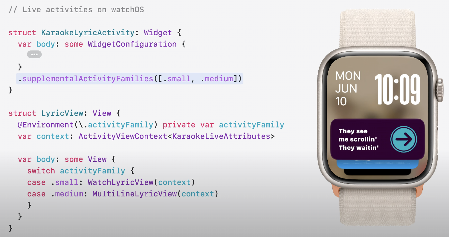 - 기존에 iOS에만 있던 Live Activities 기능이 watchOS에서도 추가됨