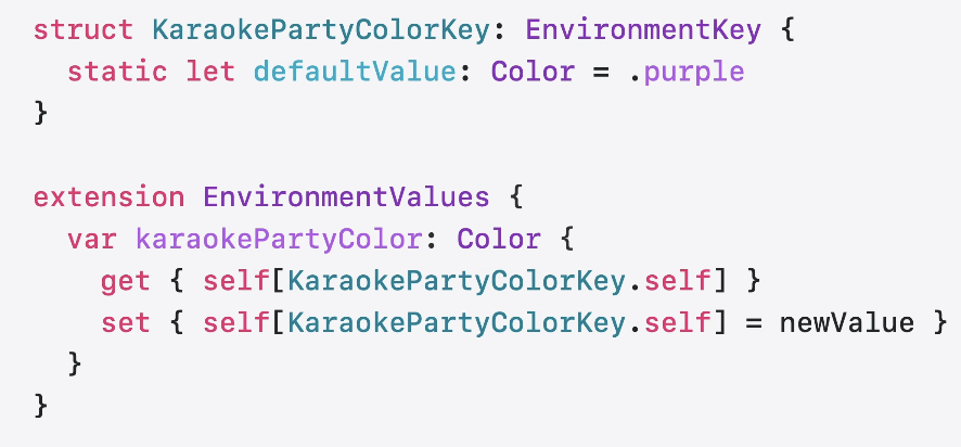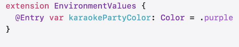 - SwiftUI의 EnvironmentKey를 사용할 때 이전에는 extension에 추가하여 사용했지만 이제는 매크로로 손쉽게 적용 가능