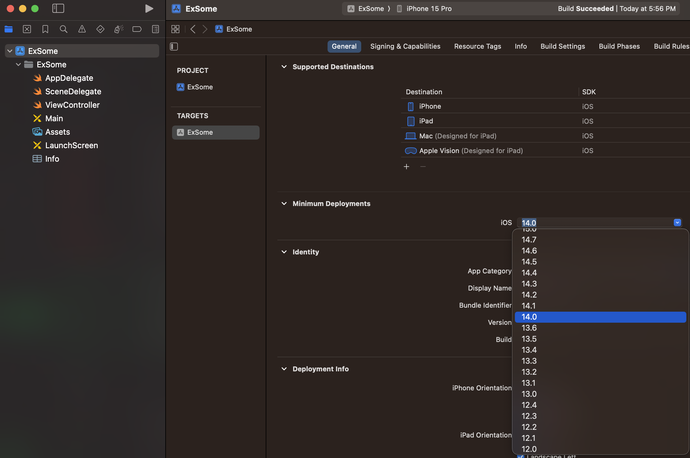 - 디바이스의 iOS버전에 맞게 Minimum Deployments가 낮게 설정되었는지 확인
