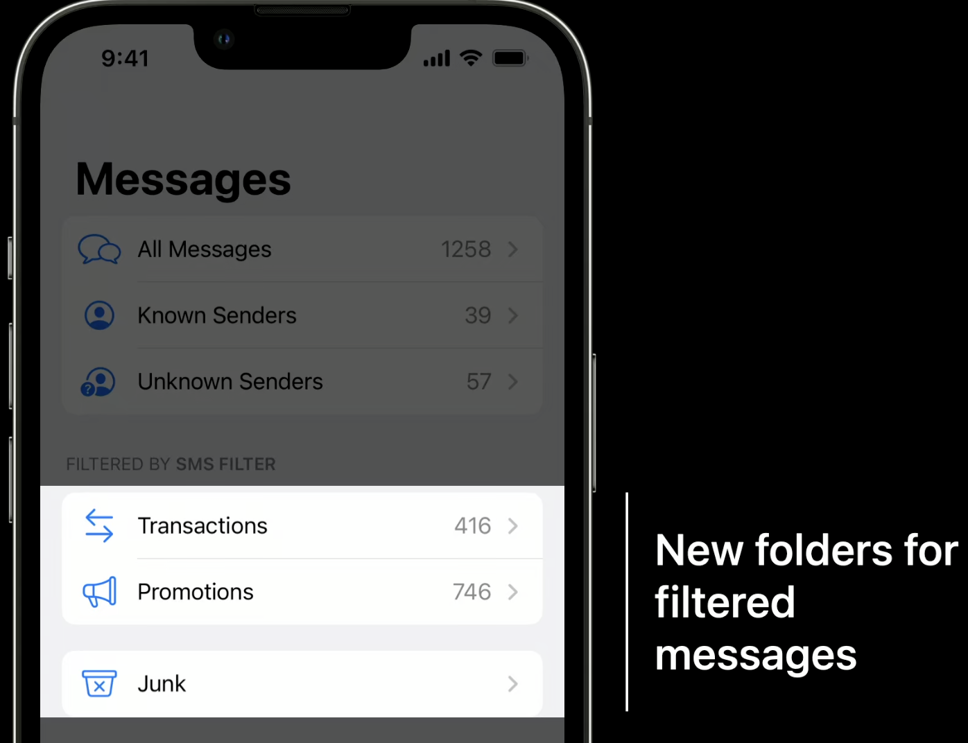 - iOS 16부터는 메시지를 12개의 하위 범주로 분류가 가능