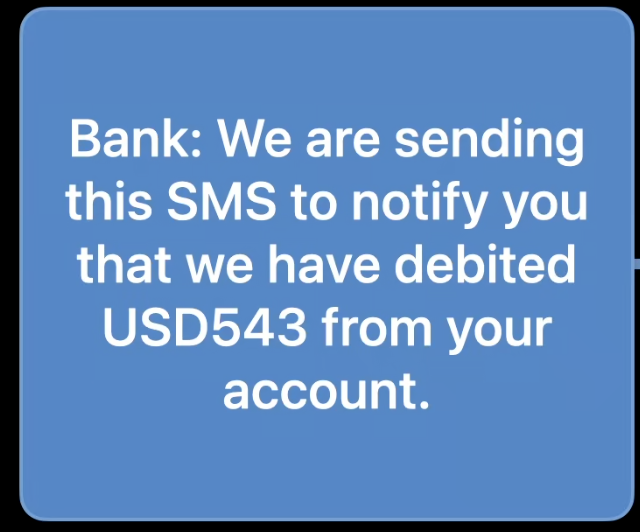 ex) 만약 아래와 같이 debited가 포함된 메시지를 받았을 때 분류된 결과?