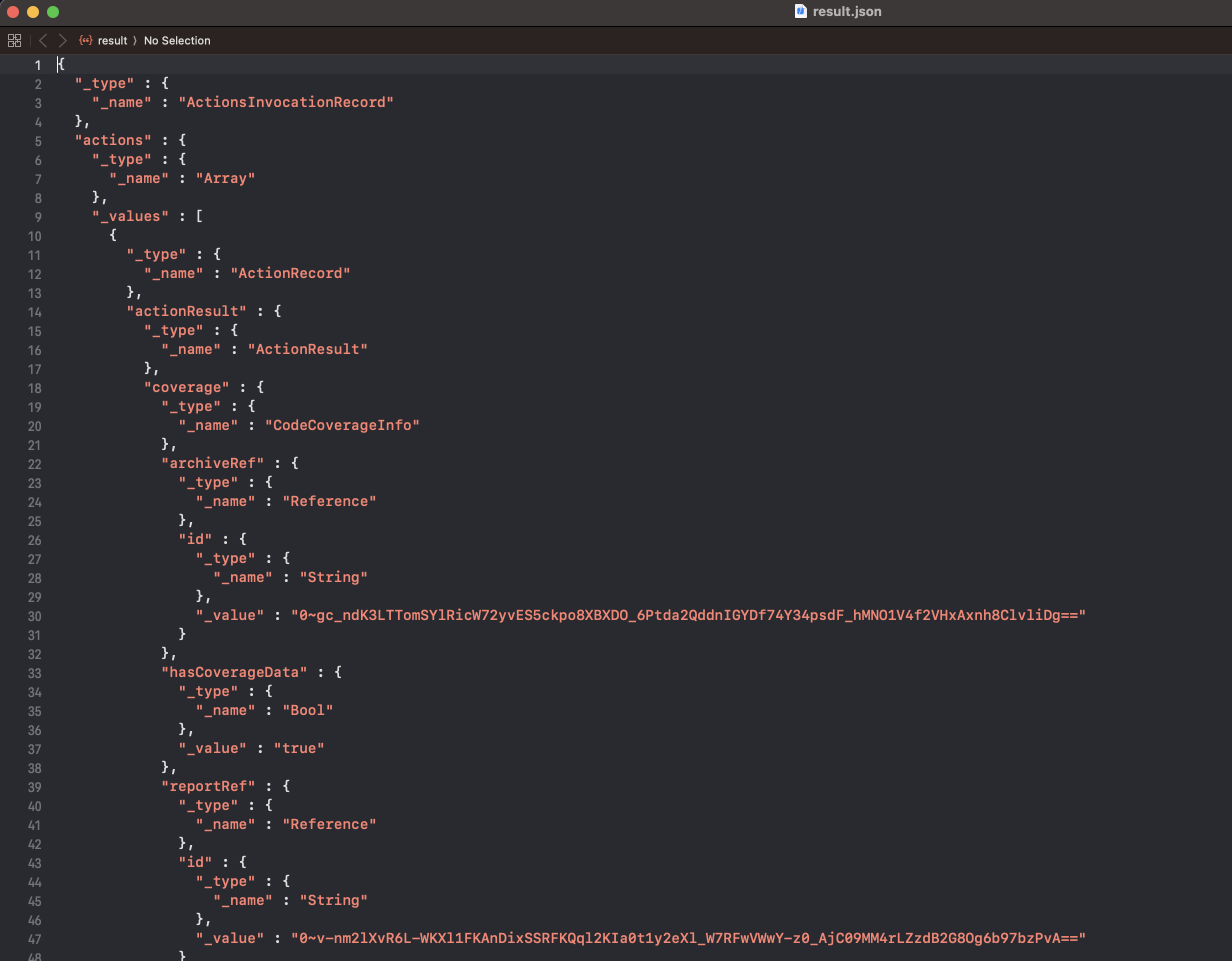 xcrun xcresulttool get --path "TestResults.xcresult" --format json