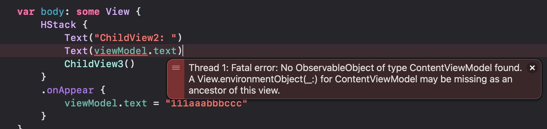 @EnvironmentObject private var viewModel: ContentViewModel