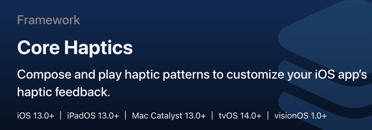 - CoreHapcits는 iOS 13부터 제공하며 햅틱의 패턴들을 정교하게 만들어 낼 수 있는 기능