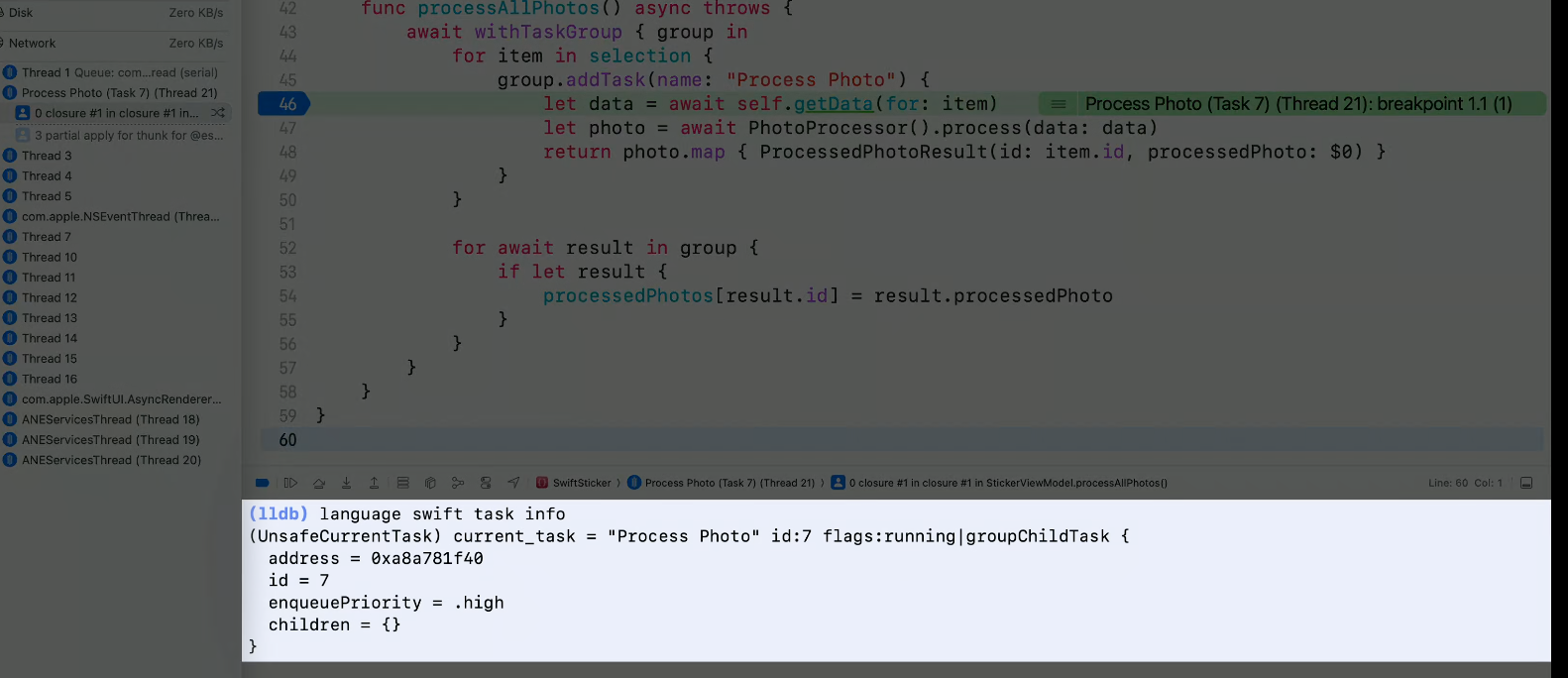- 아래처럼 비동기 코드를 디버깅할때 이제 LLDB의 새로운 명령어 사용이 가능