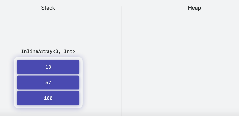 - InlineArray의 경우 heap에 별도로 저장하지 않고 Stack에 저장함