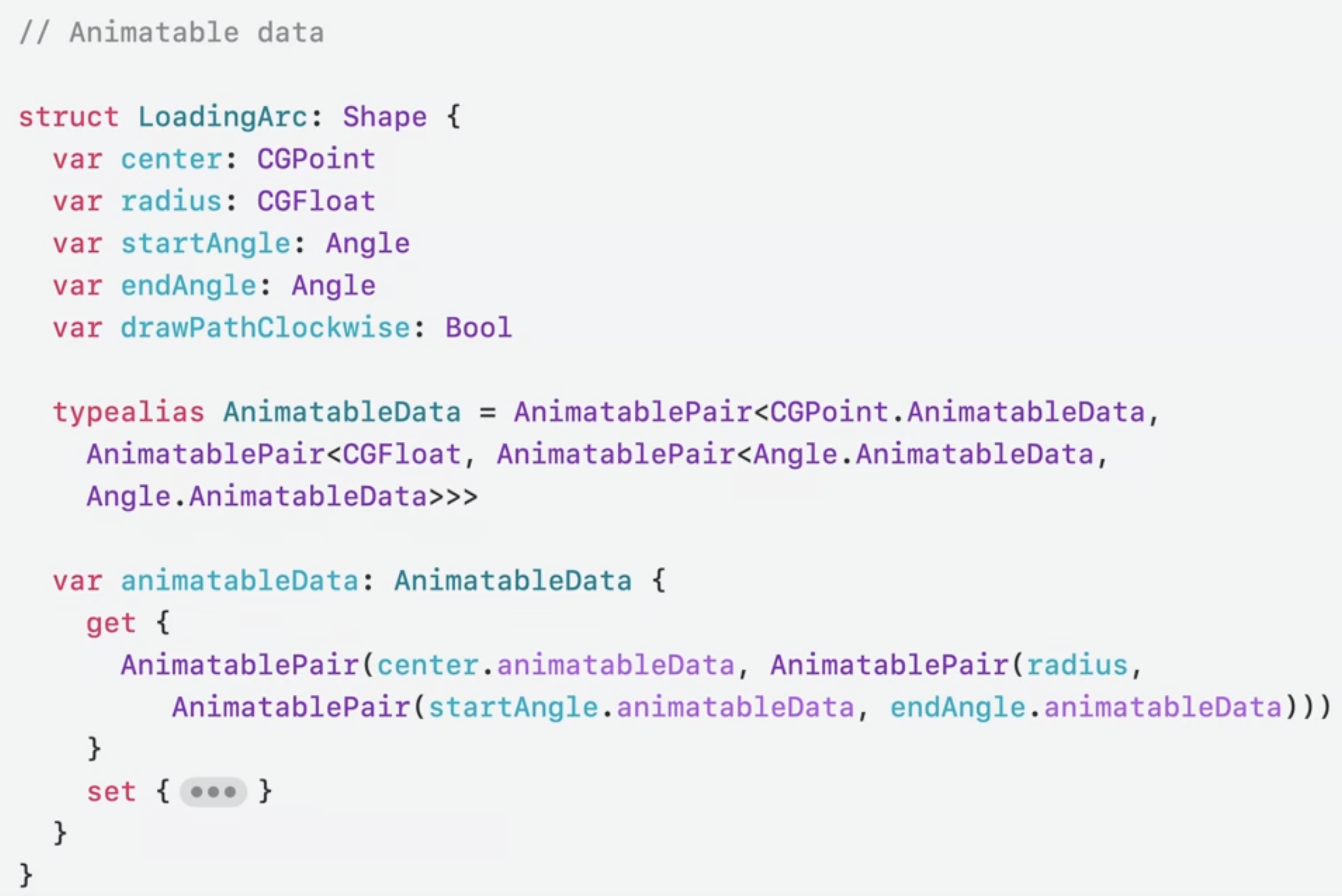 - 원래는 아래와같은 애니메이션을 구현할땐 애니메이션을 커스텀해야햐하므로 AnimatableData를 사용하여 커스텀해야함