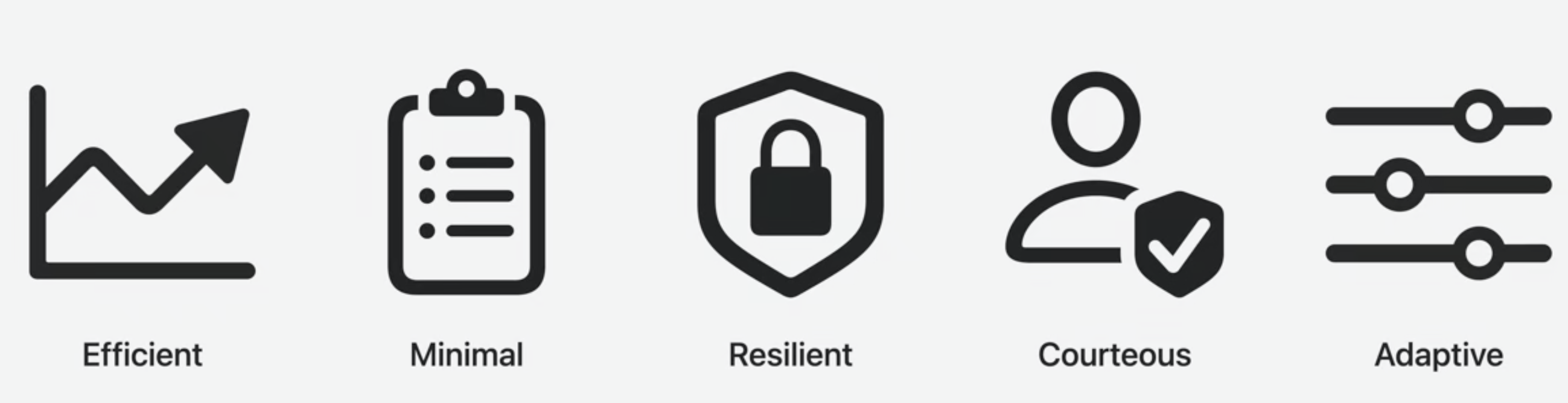 - 효율성, 최소성, 탄력성, 신중함, 적응성