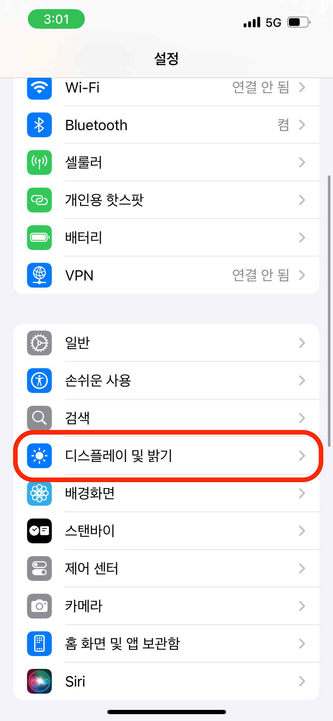 - 설정 > 디스플레이 및 밝기 > 디스플레이 확대/축소 >