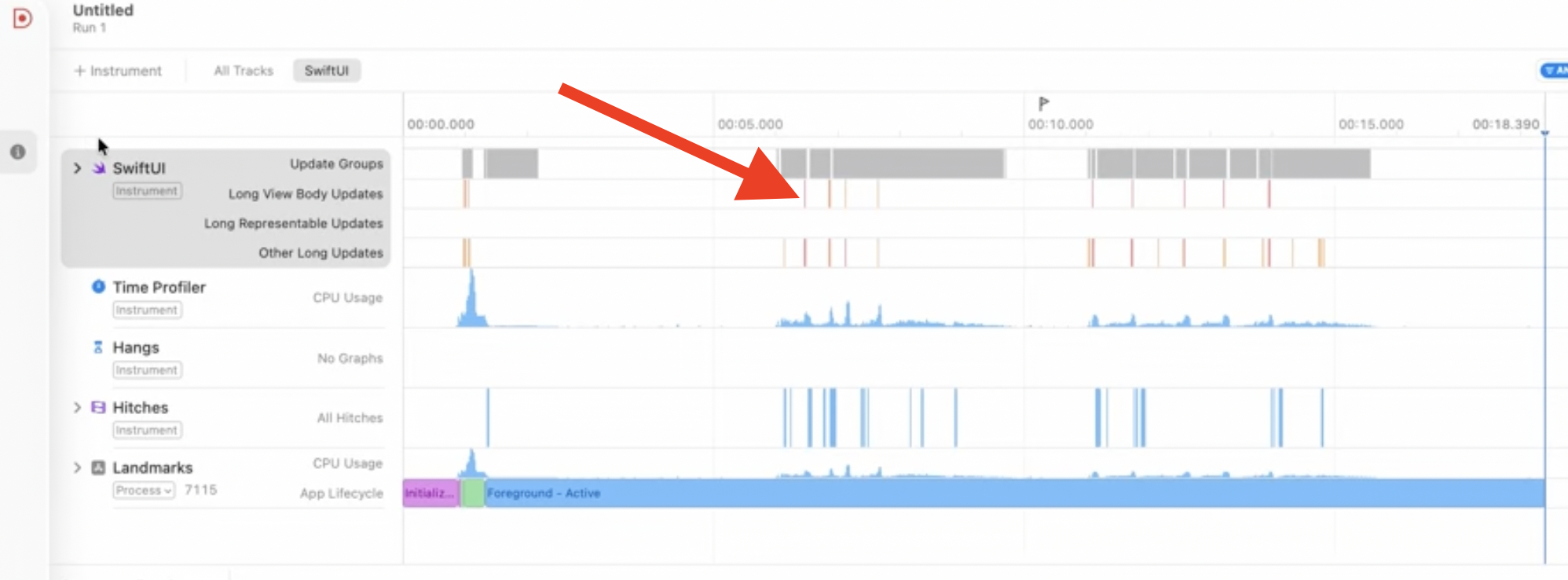 - Instrument > SwiftUI 메뉴