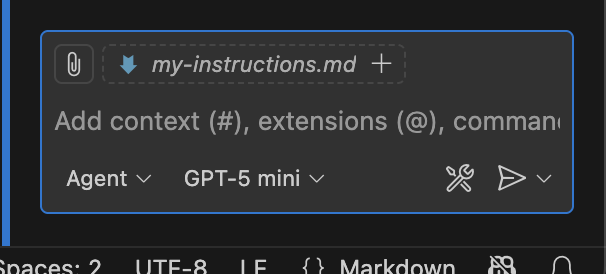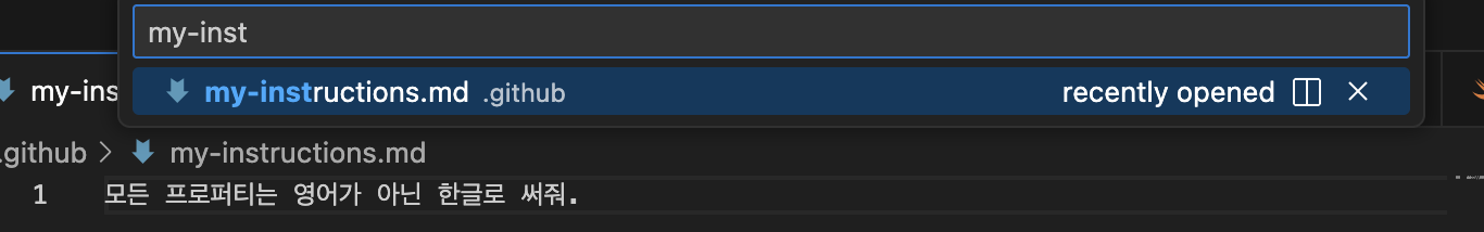 - 챗을 확인해보면 my-instructions.md가 들어가있음