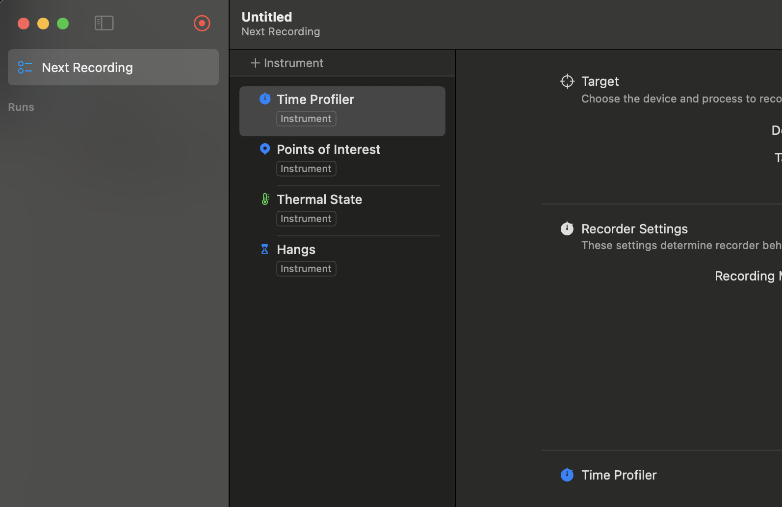 - Instruments의 time profiler 선택