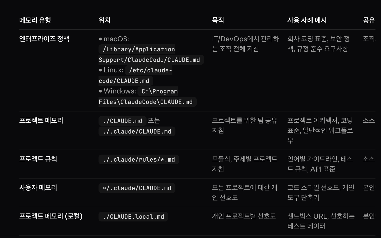 클로드코드 지침의 종류