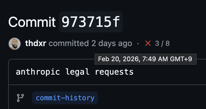 - 이 글을 적는 시점인 2026년 2월 22일에는 비록 이 커밋이 릴리즈에 들어가지 않아서 적용되지는 않았지만, 커뮤니티를 보면 앤트로픽 회사에서 클로드코드 max모델을 사용하던 유저들의 계정을 정지시킨 흔적이 있음