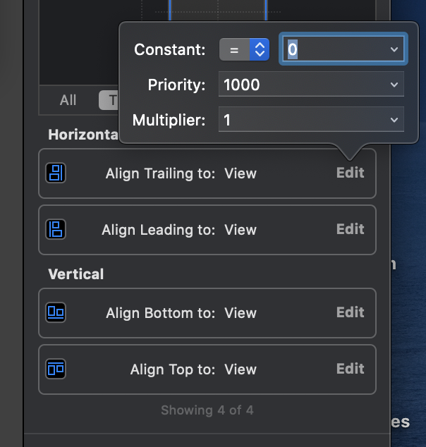 - 내부에 content view 추가 및 content layout guide와의 top, trailing, bottom, leading의 spacing 모두 0으로 설정