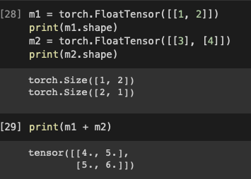 Broadingcasting: 차원이 달라도, 파이토치에서 자동으로 연산 규칙을 정해줌