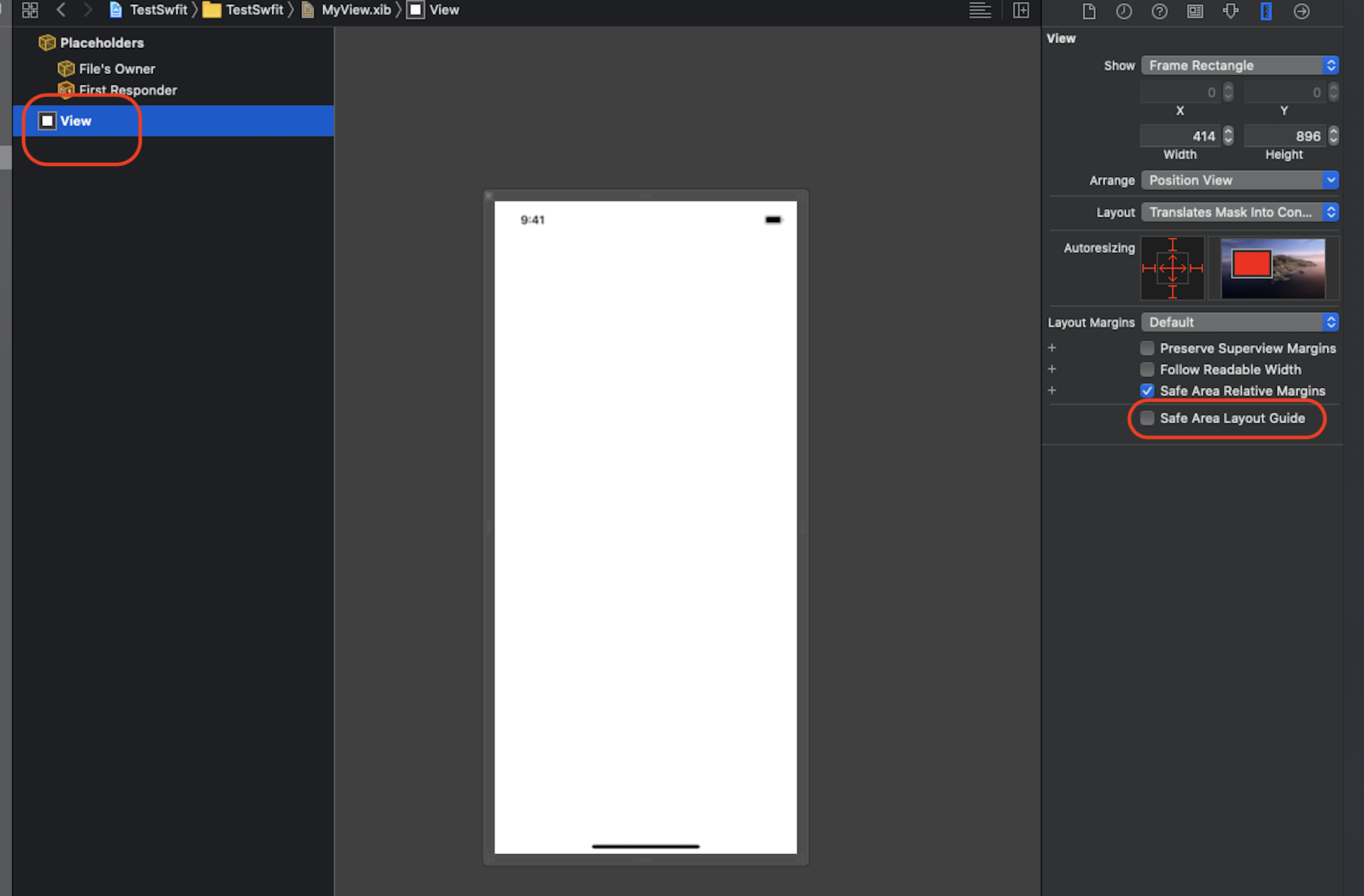 - Safe Area 체크 해제
