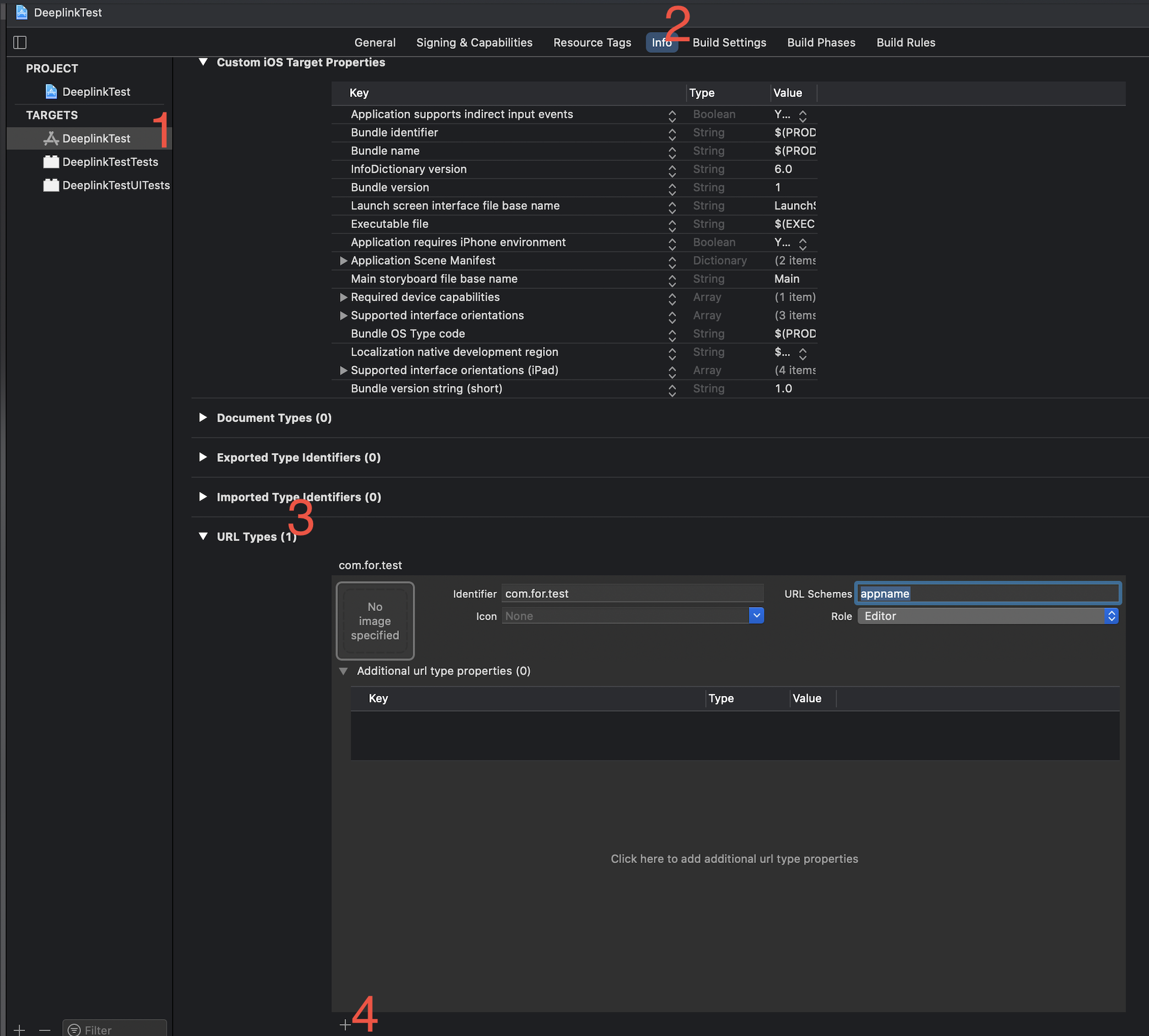 - identifier와 URL Schemes에 기입 (URL Schemes에는 일반적으로 앱 이름을 기입)