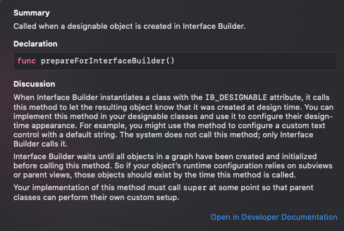 ovveride func prepareForInterfaceBuilder() {