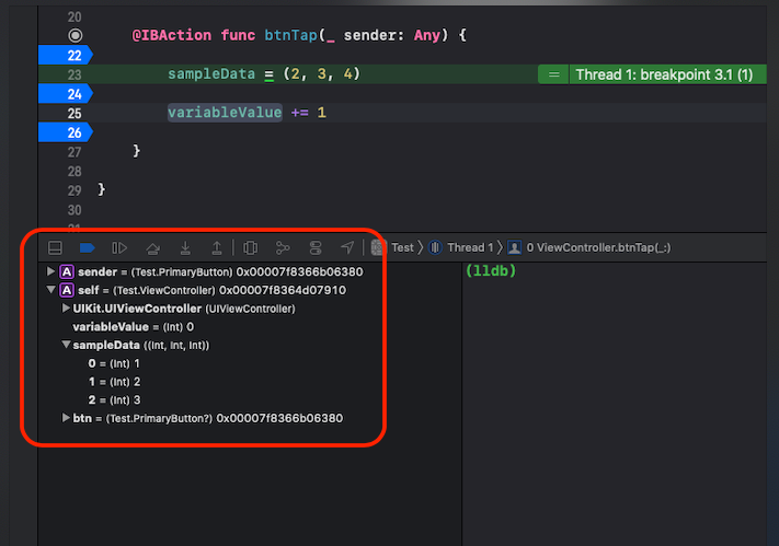 [iOS - swift] run타임에서 디버깅 방법, 콘솔창에서 print (break point, po) 본문