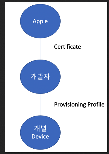- 소프트 웨어를 신뢰하는 건 Certificate가 담당하고, provisioning profiles는 각 "디바이스"(개인 사용자)가 "개발자"를 신뢰할 수 있는지 확인