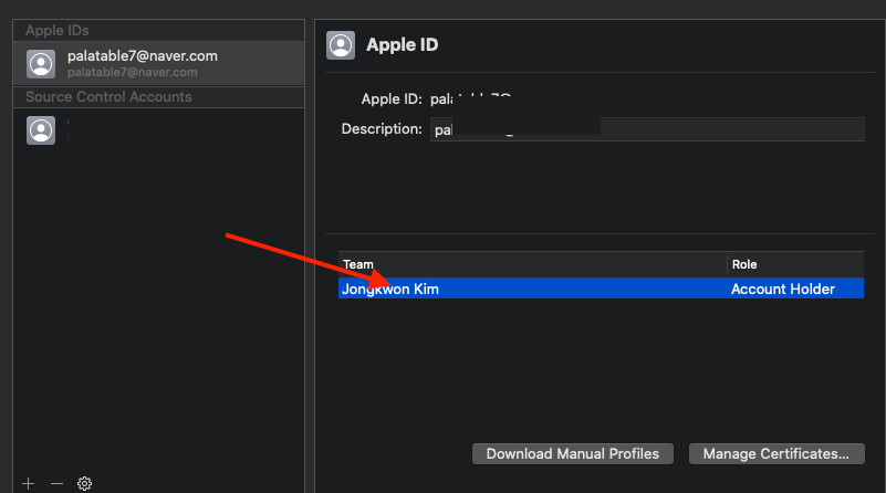 - Team에 있는 Account Holder 더블 클릭하여 현재 존재하는 인증서 확인하면 완료