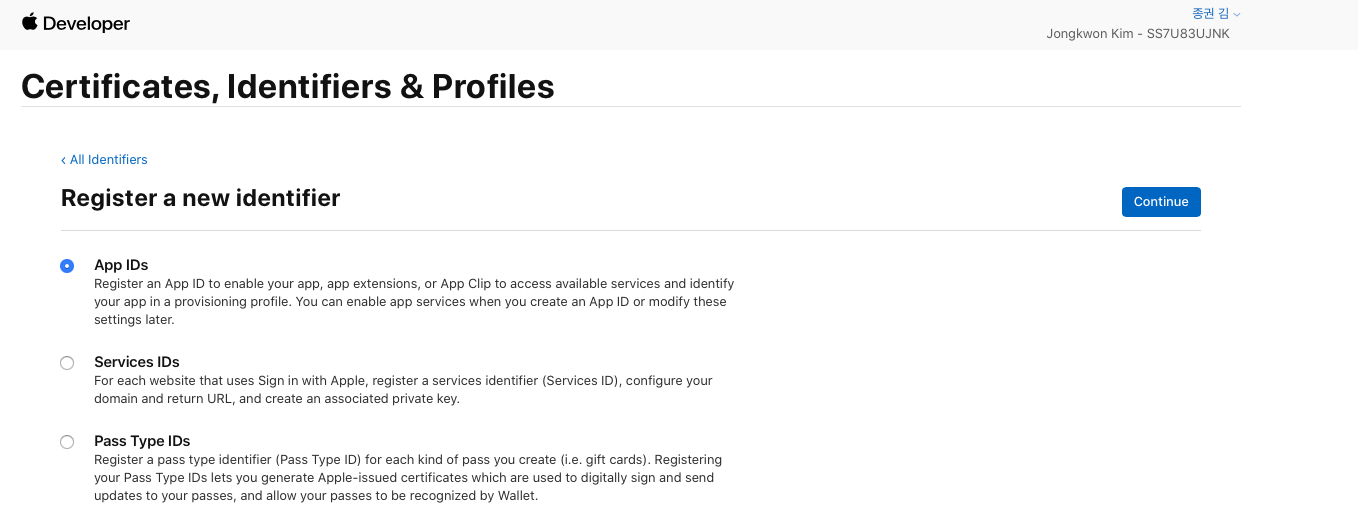 [iOS 앱 배포 준비] App ID (Identifiers) 등록 본문
