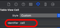 2) table view cell을 선택하여 id기입 ( UITableViewController안에서 사용할 재사용 큐에서 셀을 참조하기 위함 )