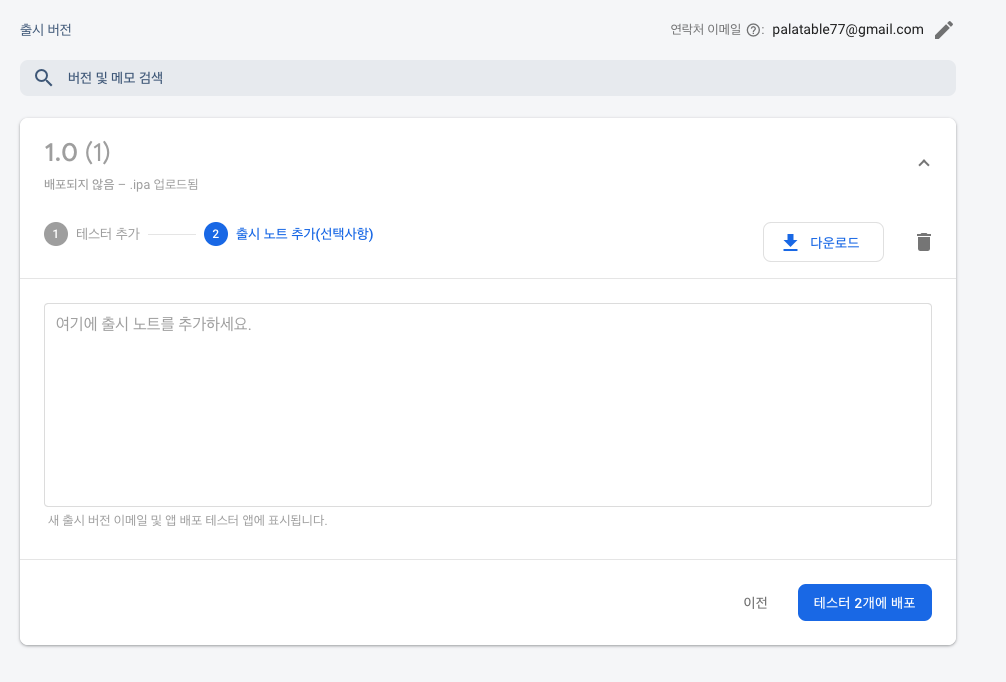 - 테스터 2개에 배포 클릭