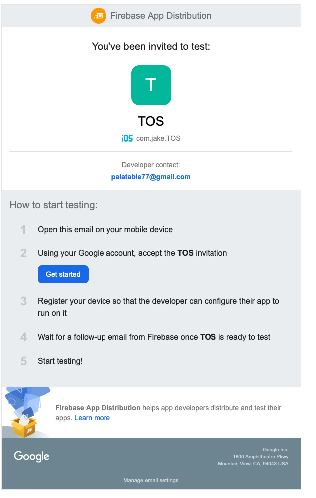 - "배포"를 클릭하면 테스터들에게 메일 전송 - Get started