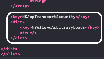 * URL주소에 https가 아닌 http라면 info.plist에 ATS보안 설정을 해줘야 함