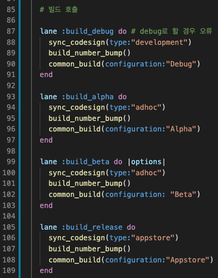 - build bump lane 관련 fastfile 내용 (각 빌드에서 호출)