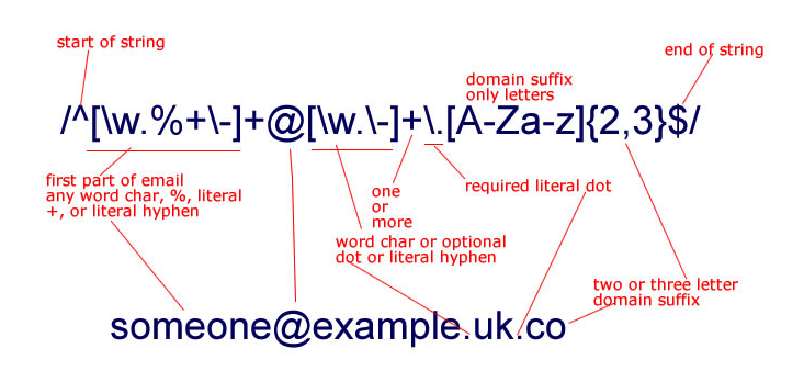 - 이메일: /^[0-9a-zA-Z]([-_\.]?[0-9a-zA-Z])*@[0-9a-zA-Z]([-_\.]?[0-9a-zA-Z])*\.[a-zA-Z]{2,3}$/i